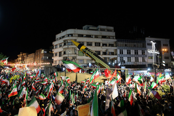 △当地时间4月21日,伊朗德黑兰,专家插足反好意思反以请愿行径,伊朗武装部队在请愿区域展示弹说念导弹