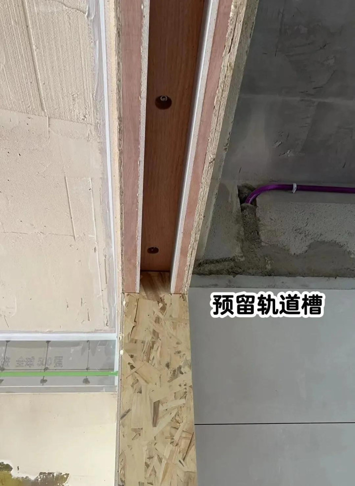 提前预留轨说念槽,不错看到上方木板下层是有膨大丝加固的。