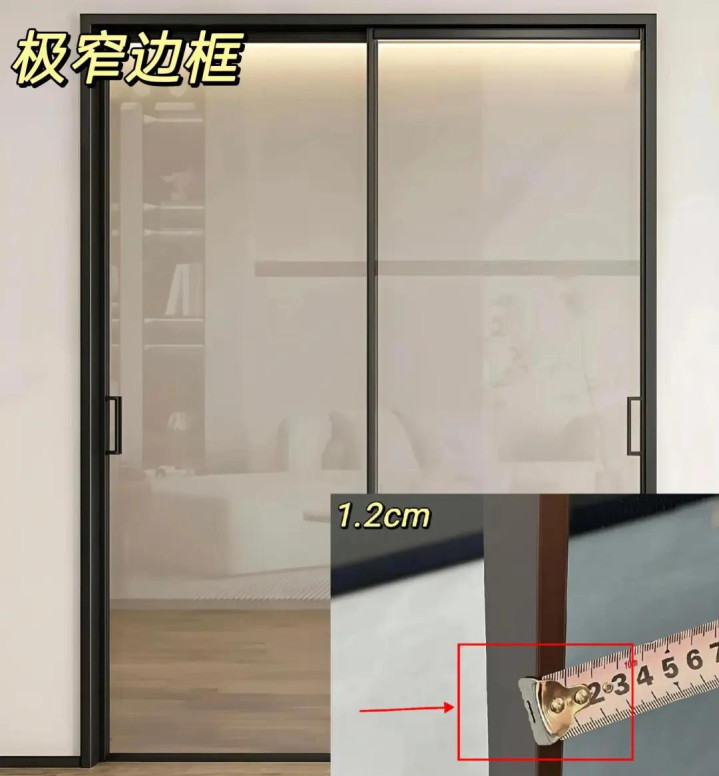 已往宽边框的推拉门就不要选了,因为它在视觉上又笨又重,从视觉体验来看,它会遮挡较多视野,镌汰空间通透感,立场适配性上,宽边框外不雅沉稳,与追求细小感的从简、当代等装修立场难以交融。